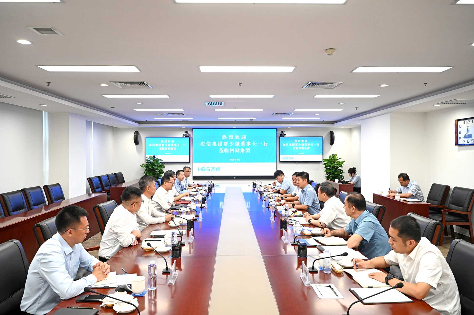 8月13日,集团党委书记、董事长刘键与海信集团党委书记、董事长贾少谦在集团总部座谈交流,携手推进多领域合作,全面拓展共赢发展新空间。